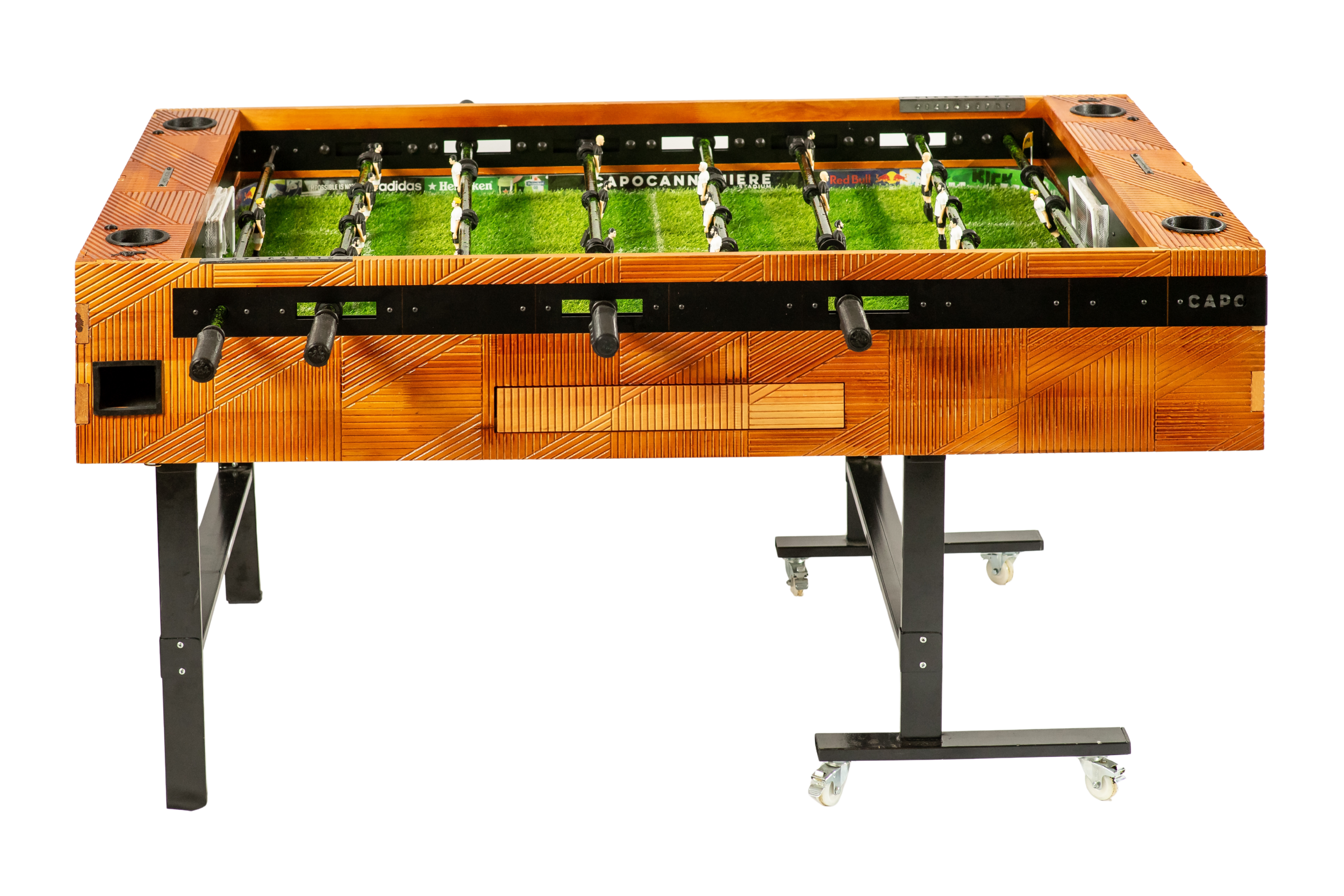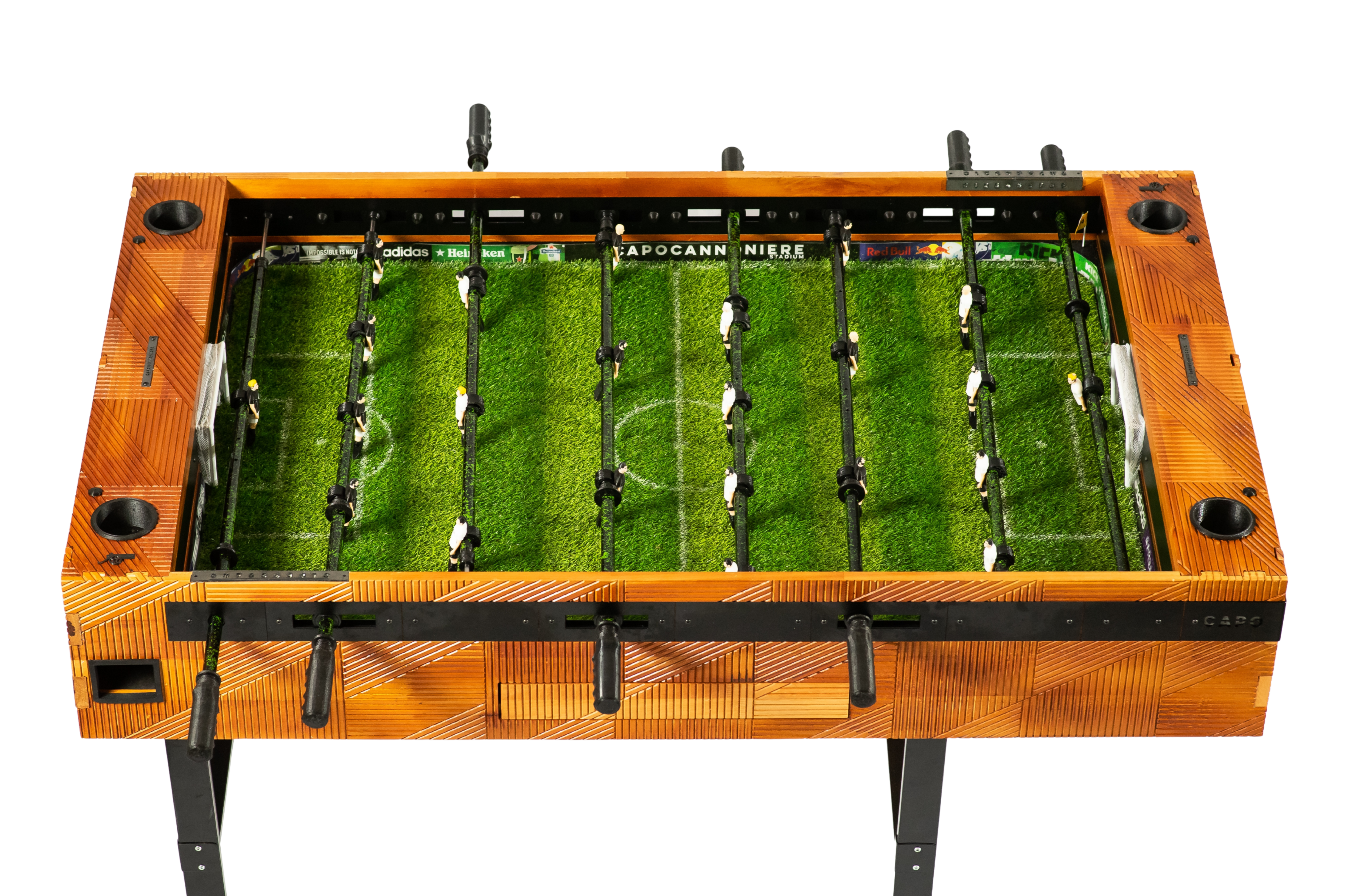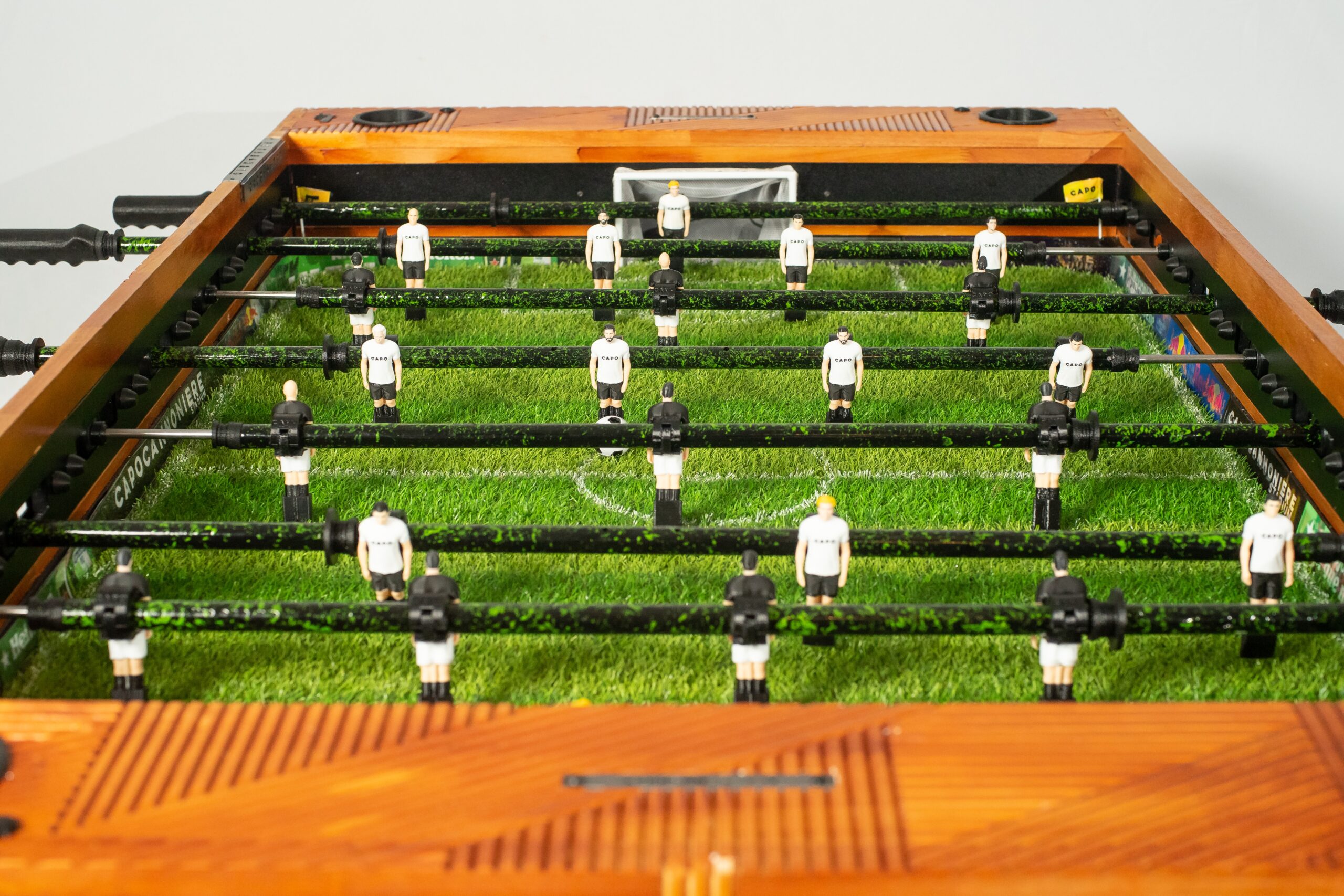 Imagina la versatilidad definitiva. Con la innovadora función retráctil de Capocannoniere, tu espacio se transforma al instante. De un vibrante epicentro de juego, tu metegol se eleva con gracia y se posiciona verticalmente, convirtiéndose en el adorno más sofisticado y funcional de tu quincho, sala de juegos o living. Ya no guardas un metegol, exhibes una obra de diseño que sorprende y deleita, liberando espacio con un toque de magia
